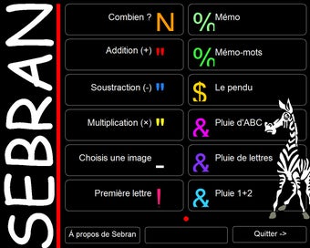 Sebran's ABC est un logiciel éducatif gratuit qui contient 12 jeux de calcul, de lettres et de logique pour les enfants de 4 à 9 ans.